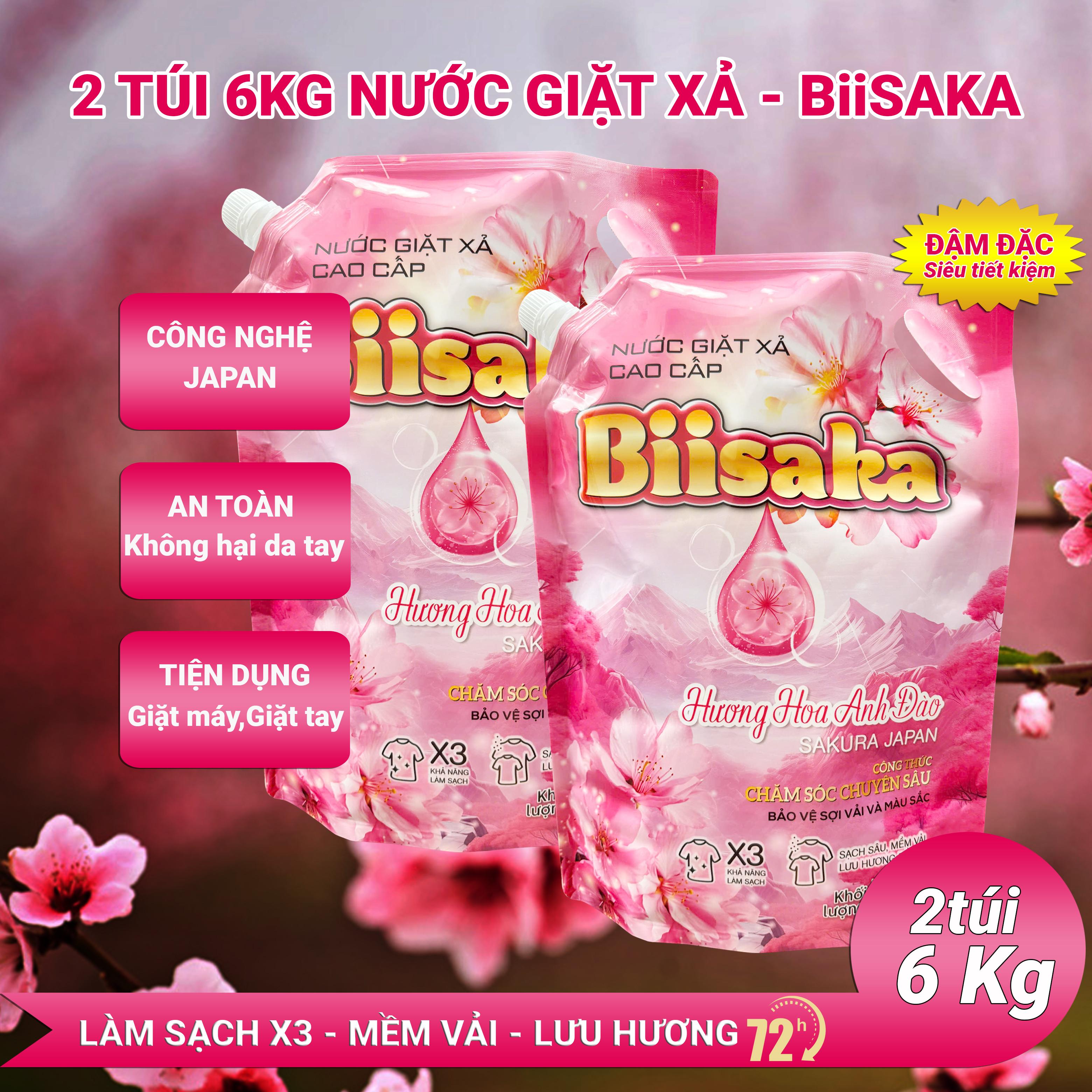 COMBO 2 TÚI ( Tổng 6KG ) Nước Giặt Xả Cao Cấp Biisaka, Hương Hoa Anh Đào Thơm Ngát, Lưu Hương Lâu, An Toàn Cho Da Nhạy Cảm, Làm Mềm Vải, Làm Sạch Sâu – Máy Giặt Cửa Trên, Cửa Ngang, Giặt Tay Đều Dùng Được